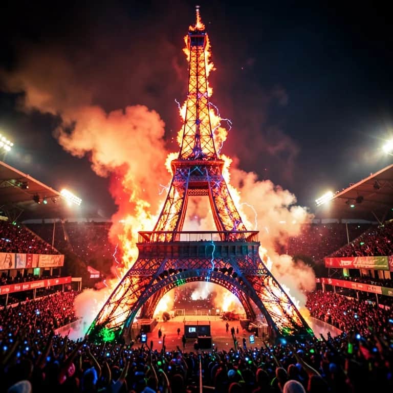 DJ set PSG: basses lourdes, chants samplés, drop explosif, nuit électrique, Paris en feu, vibe club + stade