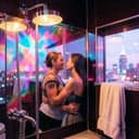 Fun disco groove, slap bass, funky rhythm guitar, retro keys, playful male/female duet, upbeat tempo
