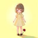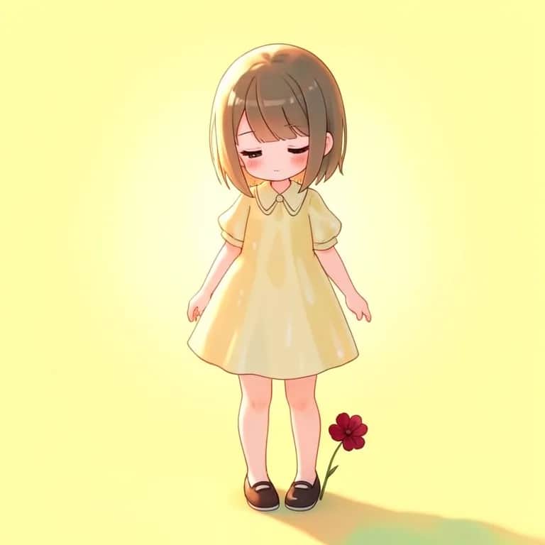 A super cute kawaii girl's voice. She's wearing a short, light cream-yellow dress. The background is a light yellow.