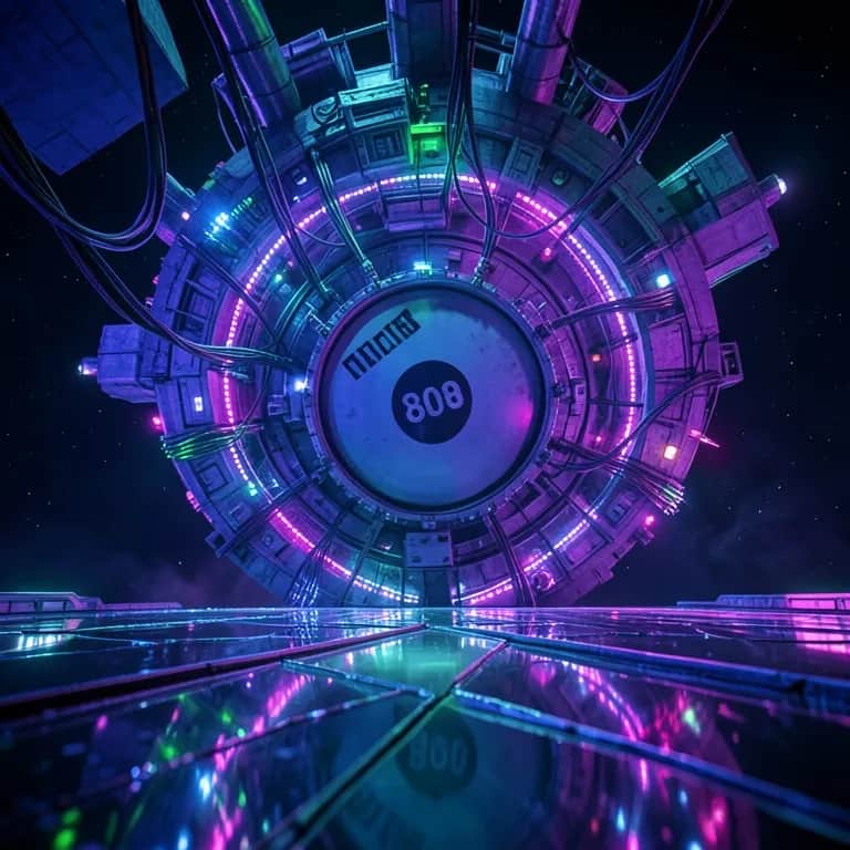 140 bpm, sub-heavy dubstep with industrial sounds, alien space, trap groove, 808 bass movement over brute force