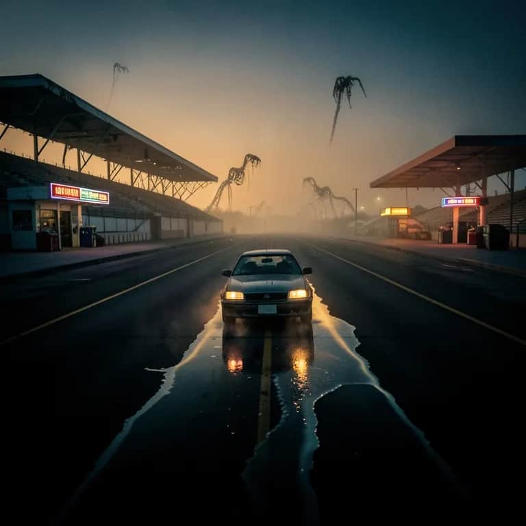 [Intro] [orchestra tuning Then sudden hush] [Verse 1] Neon hum on the highway shoulder Coffee cups lined like tiny crowns Gravel crunch under tired tires Night shift king in a paper gown He wipes the glass with a fraying rag Counts the change in a plastic tray Names on badges Hearts on fumes Waiting for a car to stray [Chorus] Welcome to the Speedway Cathedral of the interstate Fill your tank Confess your day I will listen while you wait Under buzzing halos Hope and diesel Side by side In this glowing little kingdom Where the broken stop to ride [Verse 2] Truckers trade their stories softly Scratch-off prayers on the counter worn Teenage hearts in the candy aisle Sharing secrets till the dawn A woman buys a single flower From the stand by the frozen door Sets it down by the windshield wipers Breathes Then braves the road once more [Chorus] Welcome to the Speedway Cathedral of the interstate Fill your tank Confess your day I will listen while you wait Under buzzing halos Hope and diesel Side by side In this glowing little kingdom Where the broken stop to ride [Bridge] (ahh) Is this a temple or a trap? Am I a clerk or quiet priest? Ringing up small absolutions Chips and gum A midnight feast What if I just locked the doors? Kept the lonely here with me? But taillights bloom like falling stars And duty sings “Let them be” [Chorus] Welcome to the Speedway Cathedral of the interstate Fill your tank Confess your day I will listen while you wait Under buzzing halos Hope and diesel Side by side In this glowing little kingdom Where the broken stop to ride [Outro] So drive on from the Speedway Carry fragments of this place Smell of rubber Hint of rain And a stranger’s kindly face