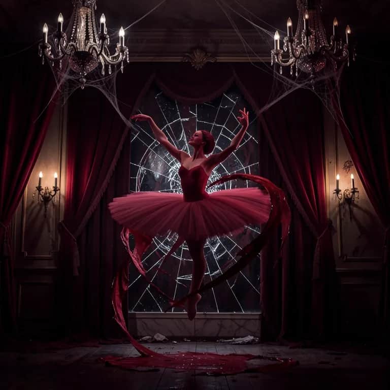 Verse 1) Velvet curtains breathing in the dark Powdered silence, pounding heart Porcelain smile, stitched so tight She floats like a ghost in the pale moonlight Satin ribbons round her feet Heartbeat ticking in 3/4 beat Music swells — the crowd holds breath She dances on the edge of death (Pre-Chorus) Tiptoe, tiptoe, don’t look down There’s broken glass beneath her crown Grace so sharp it cuts the air Beauty drips from her vacant stare (Chorus) She’s a killer ballerina Spinning secrets in between ya Pirouette in blood-red glow Take a bow — it’s your last show Arabesque in the spotlight’s glare Death is braided in her hair When she leaps, you won’t see her Fall for the killer ballerina (Verse 2) Backstage whispers, fading screams Torn up playbills, shattered dreams Tulle like mist around her knees She moves with deadly elegance and ease Every plié hides a blade Every grand jeté — a debt unpaid Applause thunders, unaware Of the danger in her midnight stare (Pre-Chorus) Tiptoe, tiptoe, feel the chill She bends the dark to fit her will Sugar and spite in every pose A dying rose in satin clothes (Verse – Français) Sous les lumières, le sang fleurit (Under the lights, blood blooms) Ses pointes tranchent sans un cri (Her pointe shoes slash without a scream) Un tour rapide, la gorge s’ouvre (One swift spin, the throat opens) Dans son sillage, la mort la couvre (In her wake, death cloaks her) (Chorus) She’s a killer ballerina Black swan queen, a silent schemer Curtain falls and lights go low One more soul she’ll overthrow Arabesque in the spotlight’s glare Mercy vanishes in air When she leaps, you won’t see her Fall for the killer ballerina (Bridge) Music box begins to crack No one ever makes it back Spin by spin the story’s told In silver notes and hands so cold En pointe on your last breath She choreographs a flawless death (Final Chorus) She’s a killer ballerina Dancing closer, leaner, meaner Final bow, the end is near Whispers echo in your ear Arabesque in crimson sheen Prettiest nightmare ever seen When she leaps, you won’t see her Curtain call — killer ballerina.