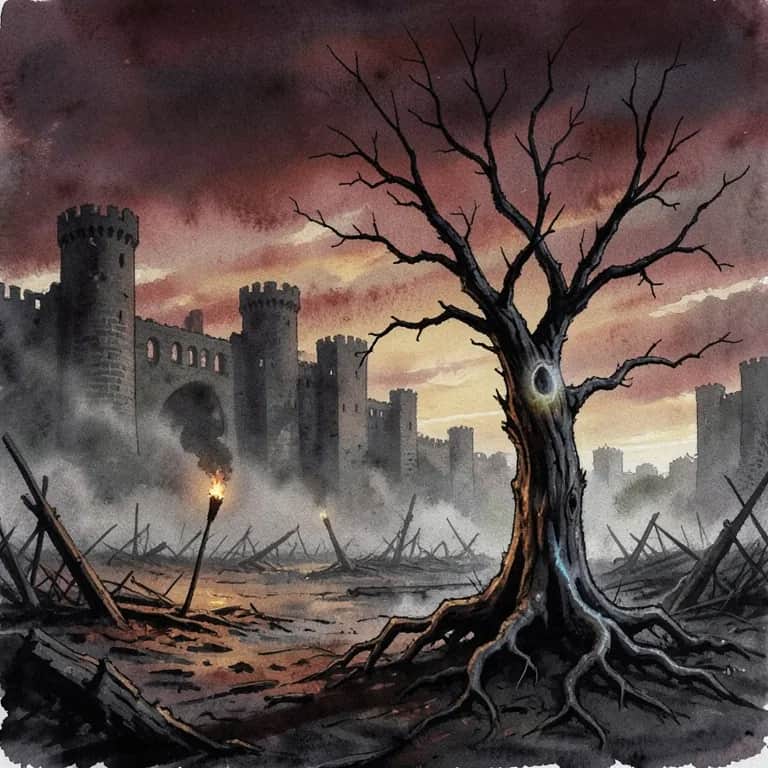 [Verse 1] The bells rang out in the morning light Smoke rolled across the plain Steel met steel on the battered walls But victory never came They fought like wolves through fire and ash Where broken banners hung Yet something moved behind men’s eyes And turned the brave ones young [Chorus] Oh the Gnar is rising in the minds of men Not by fang, not by claw, but the will within We hold the line though the night grows far But the war turns dark with the rise of the Gnar [Verse 2] The towns fell slow along the roads Their watchfires burning low For gates swung wide in the darkest hour By hands they used to know A captain turned, a brother fell A blade struck from the rear For worms had burrowed deep in minds And twisted truth to fear [Chorus] Oh the Gnar is rising in the minds of men Not by fang, not by claw, but the will within We hold the line though the night grows far But the war grows cold with the rise of the Gnar [Verse 3] They said the armies marched from the east Across the desert sand A thousand spears and banners bright To save the dying land So every night the watchfires burned And every child would pray For horns of hope on the morning wind To drive the dark away [Verse 4] Then shapes appeared upon the ridge At dawn through drifting char But twisted forms came staggering down Marked by the hand of Gnar The eastern host was broken first In some far desert scar And what returned was not a host But creatures of the Gnar [Bridge] The horns they heard were not for hope But war cries split and torn For every friend they waited for Returned to them reborn Yet on the deck of the Baywhar Babe Three young hearts still stood tall The blood of Strongcastle in their veins Refusing still to fall [Final Chorus] Oh the Gnar is rising in the minds of men Not by fang, not by claw, but the will within Still we stand though the night grows far And curse the dawn of the eastern Gnar [Outro] Hold the walls… hold the line… Though the world now bears the scar For hope must rise from the hearts of men Against the rise of the Gnar