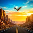 pop, Epic arena rock anthem, male vocals. Wide-open guitars and bright leads over a pounding, halftime-then-driving drum groove, huge stacked gang vocals in the chorus, tom build into each hook. Verses start tighter with palm-muted crunch and distant synth pad, then pre-chorus lifts harmonic tension. Final chorus jumps a full step up, cymbals crashing, sustained high notes and crowd “whoa”s, ending on a held chord and reverb tail., electric, soaring