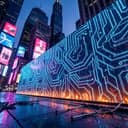 Dark futuristic synthwave, Tron Matrix vibe, pulsing bass, neon cyber atmosphere, driving beat, catchy hooks, gym energy