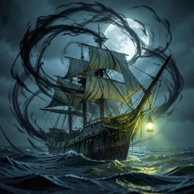 [Intro] Deep in the blackened sea, shadows arise, The Shadow Demon, with piercing eyes. A ghostly ship that prowls the night, Feeding on sailors, ready to fight. [Verse 1] Dark waters rumble as it draws near, A specter of vengeance, born of fear. Sails of shadows, winds of dread, Leaves no sailors alive, all but one dead. [Pre-Chorus] Whispered tales of the cursed and damned, Of the ship that haunts the sand. One story kept, one voice unseen, The survivor’s tale of a ghostly machine. [Chorus] Oh, Shadow Demon, ruler of the gloom, Sails of darkness, bathed in doom. Capture your prey and claim their breath, One survives, to tell of death. [Verse 2] No lantern glows, no beacon bright, Just thunder crashing through the night. Fear the shadow, rage in the storm, A wrathful ship, forever forlorn. [Pre-Chorus] Echoes of the fallen, swirling deep, Secrets that the shadows keep. One survivor, scarred and old, Who will tell the story bold. [Chorus] Oh, Shadow Demon, ruler of the gloom, Sails of darkness, bathed in doom. Capture your prey and claim their breath, One survives, to tell of death. [Bridge] A cursed voyage, a haunting plight, Beneath the moon’s cold, hollow light. The legend lives, the sailors scream, Bound forever in the Shadow Demon’s dream. [Outro] So beware the dark and restless sea, Where shadows dance and sailors flee. The Shadow Demon’s tale is spun, And only one will tell of what’s to come.
