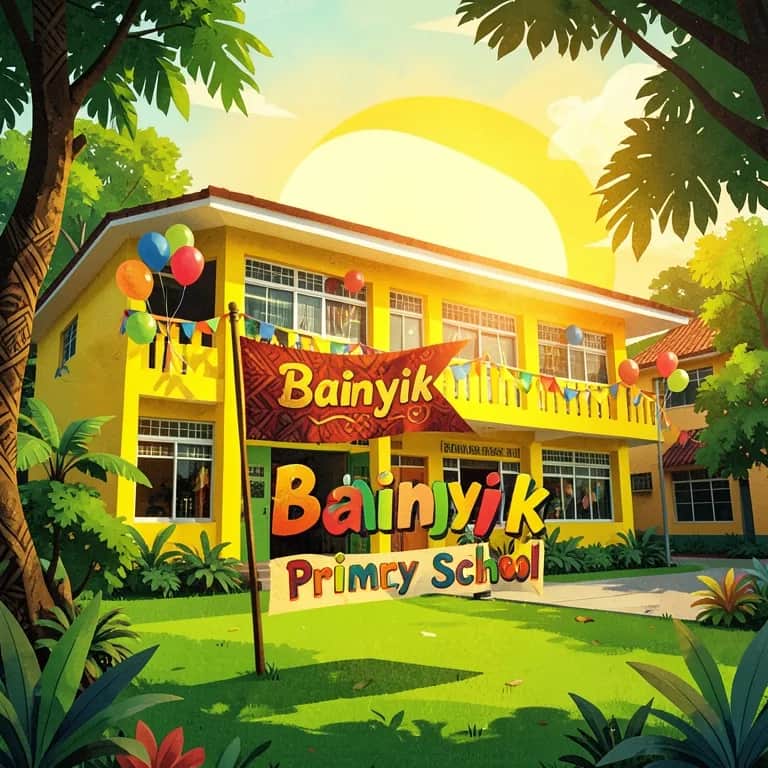 In the heart of Maprik district We are bright with our colors Green and yellow We promote Child friendly and Show our best always This is Bainyik primary school
