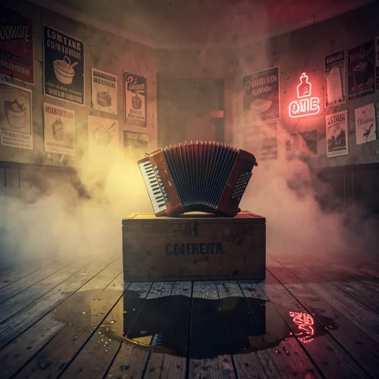 Cumbia sonidera, heavy dembow, reggaeton, storytelling, upbeat, accordion, guira, timbales, electric bass, vocal delays.