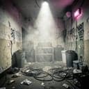 Metal with driving mid-tempo groove riffs, double-kick bursts, and stomping gang shouts; verse rides tense palm-muted guitars and bass; pre-chorus strips to drums, bass, and shouted count-ins; chorus hits with wide open chords and a brutal chant hook. Harsh lead vocal with stacked gang doubles, whispered threats, and barked ad-libs. Chain-rattle fills, siren risers, sub drops. Thick, punchy, warehouse-dry mix., metal