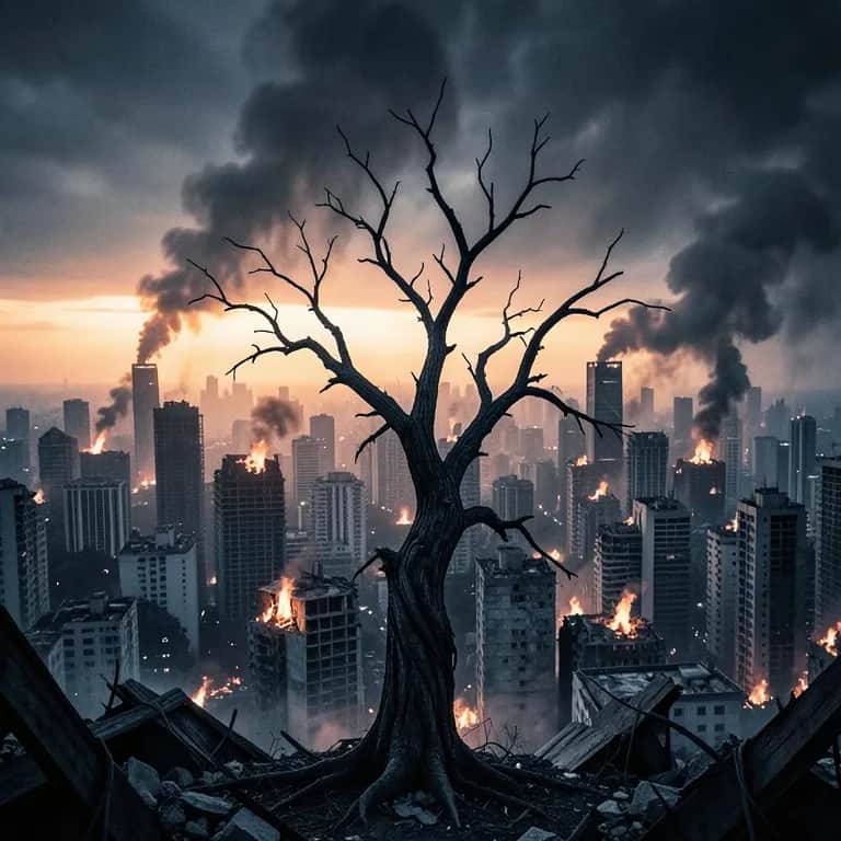 [Verse 1] Ash in my lungs Rust in my tongue I drag this crown Of twisted rebar Skies hang like meat Cities kneel and bleed I speak in plagues To a world already gone [Chorus] Welcome to the cathedral of broken suns Where every prayer is a loaded gun Bodies of angels nailed to the rain I baptize you In a tidal wave of graves [Verse 2] Teeth made of glass I chew through the past Your halo cracks On my shattered doorstep I plant your fears Like seeds in the pit They bloom as worms In the eyes of your gods [Bridge] [Everything drops to low drone Distant drums pulsing] Whispers in your ear “I am the last disease” Whispers in your veins “Crawl Don’t breathe” I name every bone Of the earth as it breaks I drag the horizon Over your face [Breakdown] [Drums and bass lurch into half-time Guitars a single grinding riff] Fall Into the throat of the storm (fall) Sink Where the oceans burn black I tear the sun From your ribcage I wear your war Like a crown of smoke [Chorus] Welcome to the cathedral of broken suns Where every prayer is a loaded gun Bodies of angels nailed to the rain I baptize you In a tidal wave of graves [Outro] One last scream Then only dust One last breath Then only rust