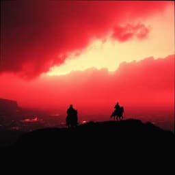[Verse 1] Drums of thunder shake the ground, Cities burn, no peace is found, Brothers fighting, flags in flame, Endless sorrow, endless shame. [Chorus] The riders of our time are here, They bring us pain, they bring us fear, Their shadows fall across the land, No heart is safe, no soul can stand. [Verse 2] Silent shadow, unseen hand, Crosses borders, haunts the land, Breath is stolen, hearts grow weak, Tears unspoken, cries unique. [Chorus] The riders of our time are here, They bring us pain, they bring us fear, Their shadows fall across the land, No heart is safe, no soul can stand. [Verse 3] Empty tables, rising cost, Counting coins for what we’ve lost, Hunger hides in wealthy streets, Where despair and silence meet. [Chorus] The riders of our time are here, They bring us pain, they bring us fear, Their shadows fall across the land, No heart is safe, no soul can stand. [Verse 4] Cold reminders every day, Famous names now fade away, Violent echoes in the night, Reaper walks with no respite. [Bridge] Hear the warning, hear the sound, Four dark riders circle round, But we can change, we still have time, Only love can turn the tide, Together we can still survive. [Final Chorus - fade out] The riders of our time are here, They bring us pain, they bring us fear, Their shadows fall across the land, No heart is safe, no soul can stand. (The riders… the riders… the riders of our time…)