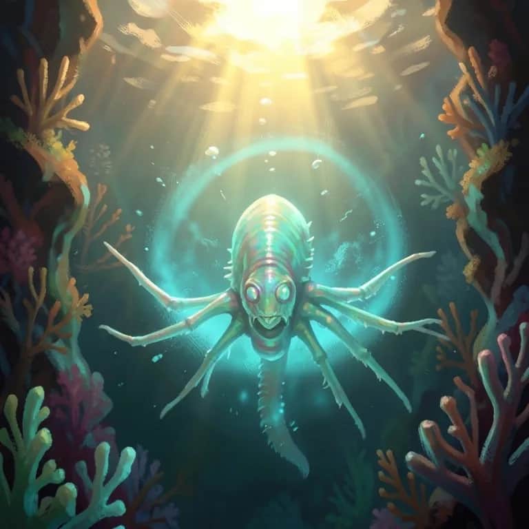 [Verse 1] In the days of old when giants roamed, A phantom of the past, where life once pulsed, Ghosts of the Cambrian period glide through the oceans, Every heartbeat echoes loudly in the silence. [Verse 2] It glides through coral canyons, silver and swift, With these lapping appendages, so graceful in their dance, Two graceful arms reach for the stars, Multifaceted visions in light and darkness. [Pre-Chorus] Riding the tides of a primeval stream, Beneath the waves, where shadows dance. [Chorus] Anomalocaris, rise up high, With a heart of thunder and a spirit to fly, In the face of trials, we will not bend, Together we conquer, we stand 'til the end. [Verse 3] Anomalocaris keeps the old days alive, But time passes like the waves on the shore, And moments we cherish crumble into dust forever, But I see you gliding in the corners of my mind. [Verse 4] Life is cyclical, we are all just passing through, But your spirit remains like a faded color. We write our own stories, but they are all intertwined, In the flow of the ages, when the stars are favorable. [Pre-Chorus] In the shimmering depths, let the stories unfold, For every lost creature, there is a song in stone. [Chorus] Anomalocaris, rise up high, With a heart of thunder and a spirit to fly, In the face of trials, we will not bend, Together we conquer, we stand 'til the end. [Bridge] Under the stars, as the night unfolds, The stories of his bravery are lovingly told, From the whispers of the ancients to the legends..... [Chorus] Anomalocaris, rise up high, With a heart of thunder and a spirit to fly, In the face of trials, we will not bend, Together we conquer, we stand 'til the end. [End] So let us march with our heads held high, Anomalocaris, let's roam the depths.