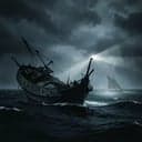 Traditional minor-key sea shanty, male vocals in a deep chest register. Slow, stomping pulse with bare rhythmic claps and low drum hits, drenched in cavernous reverb. Verses feel close and claustrophobic; choruses swell with stacked gang vocals, wordless wails, and distant choral drones that bloom like a haunted cathedral below deck. Subtle creaks, chain rattles, and wind howls lace the atmosphere for a chilling, immersive sway., slow, deep, rhythmic, shanty