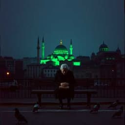 [Intro: Minimalist, lonely piano notes, slow and irregular] [Verse 1 - Very quiet, breathy vocals] Trzy świątynie: meczet, cerkiew i synagoga... [pause] walczą z miastem. Na służbie... między gwałtem architekta-profana... i renesansem religijnych ciągot mieszkańców. [Bridge - Upright bass pluck, noir atmosphere] Samochody lokalnych mafiozów kręcą pętle wokół wież. (Nazwa organizacji nieznana... [pause] ale nie ukrywajmy... Są to nieodmiennie obrzękli, skretyniali brutale...) [Verse 2 - Muted trumpet solo, very soft] –„Nie miejmy złudzeń, co do ludzi”... – powiadają aniołowie... strzepując krople deszczu na drzewa w parkach. –„Nie o modlitwie myślą, nie mogą uwierzyć... [pause] Zejdźmy jeszcze raz...”. [Solo: Short, intimate piano improvisation - bit of dissonance] [Outro - Vocal almost disappearing] Na ławce... z nogami wyciągniętymi odważnie... siedzi staruszka... i wydaje wyrok na świat. Niewiele pozostało jej pociechy... [pause] Gołębie z milczącą ufnością... przyglądają się jej rękom. [End: Sound of a piano pedal releasing, silence]