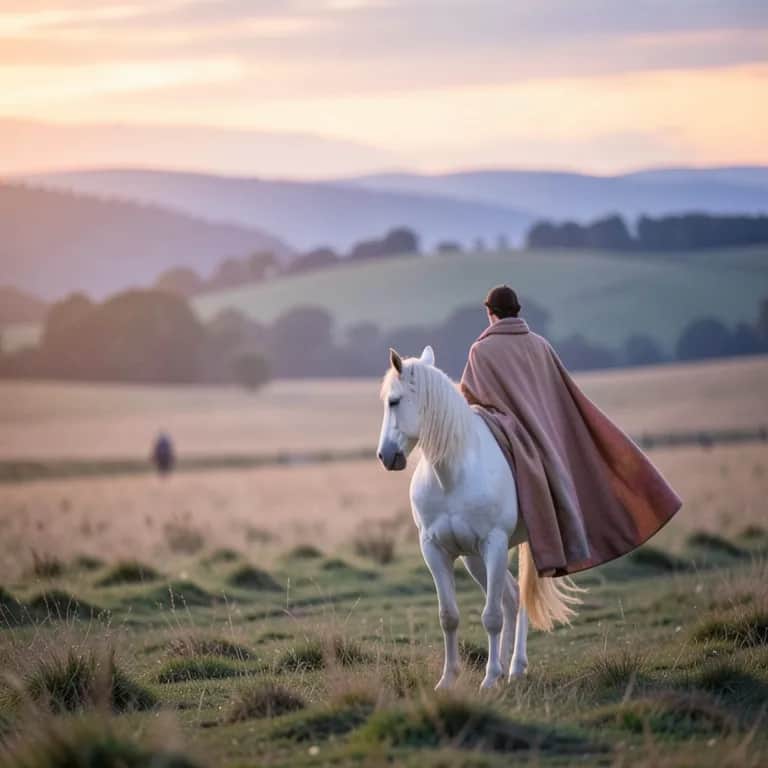 [Verse 1] Evenin’ settled soft and gold On the fields of Smallwater The Earl walked slow along the lane With Mathew at his side The boy had heard the stories told Of dragons, flame, and fear Of the day the sky broke open wide And heroes filled the air [Verse 2] “Father, tell me one more time Of the horse you used to ride.” The Earl just smiled a quiet smile With old days in his eyes “When Lord Strongcastle fought the beast Armageddon in the sky And the iron ship came falling down Like thunder from on high…” “I saw a shadow cross the sun A shape both dark and grand The last great Weyhorse of the world Who answered my command.” [Chorus] Oh Prophet walks the hidden ways Where mortal trails are gone Black as night but gentle-eyed Like dusk before the dawn He comes to hearts the world still needs When courage must begin Then fades beyond the silent roads That wind through Weys unseen [Verse 3] The twilight breeze grew still and deep The crickets hushed their song A great black shape upon the hill Came walking slow and strong A stallion built like desert kings Yet tall as mountain stone Eyes that held a thousand roads No mortal horse had known The Earl stepped close with trembling hands And laid them on his mane Like greeting some old brother Returned from distant plain [Verse 4] But then the mighty stallion bowed Before the quiet boy Mathew felt his heart beat hard With fear and wonder joined The Earl looked down and softly laughed Though tears were in his eyes “Son… he’s choosing you tonight The way he chose me once.” [Chorus] Oh Prophet walks the hidden ways Where mortal trails are gone Black as night but gentle-eyed Like dusk before the dawn He comes to hearts the world still needs When courage must begin Then fades beyond the silent roads That wind through Weys unseen [Verse 5] The Earl lifted Mathew carefully Onto the stallion’s back And Prophet stepped beyond the field Onto the hidden track They ran where secret pathways shine Through places none can see Past silver seas and distant lands And mountains wild and free He showed the boy the wonders first Bright cities, rivers wide Then darker lands where dragon thralls Still ruled with fear and pride [Bridge] But steady as a guiding star The Weyhorse held his way As if to say the world was worth The battles yet to face [Verse 6] Then softly by the Smallwater road The great horse came once more And set the boy beside his dad The way he had before The Earl pulled Mathew close to him And held him strong and tight “Son… I know the road you rode tonight I rode that road one night.” [Final Chorus] Oh Prophet walks the hidden ways Where mortal trails are gone Black as night but gentle-eyed Like dusk before the dawn And when the world grows dark again And hope grows thin and small The Weyhorse rides the Weys once more To answer courage’s call [Outro] The wind moved through the quiet fields The stallion slipped away But father, son, and waiting world Know he will ride someday.