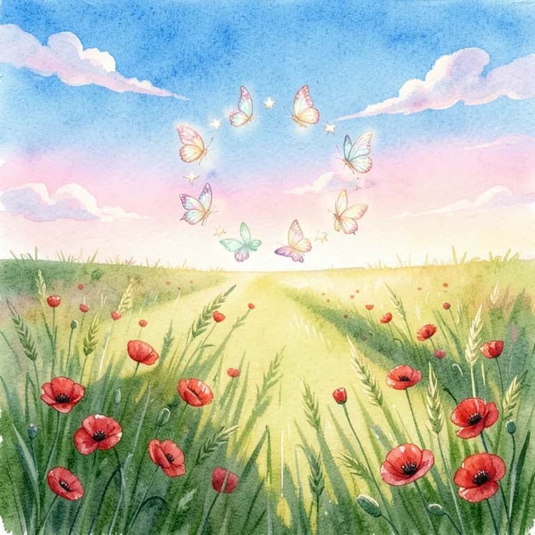 Title: Summer Meadow ⸻ Verse 1 Over the summer meadow lies a warm and golden light, between red poppies and grasses dances wind so soft and light. Blossoms flicker like small fires in a wide and emerald sea, and the sky stretches its blue calm and bright above the scene. ⸻ Verse 2 Butterflies are drawing circles in the warm and glowing sun, shadows drifting slow and gentle over clover as they run. Soft and easy breezes carry echoes of a distant laugh, and a quiet, shining sparkle rests so lightly in the grass. ⸻ Chorus (sing-along) Oh oh oh – summer carries all the joy, Oh oh oh – every step a piece of it. La la la – hear the meadow sing along, La la la – like the days can’t go wrong. Oh oh oh – in the warm and golden light, Oh oh oh – joy is dancing in each step. ⸻ Verse 3 Warm air carries gentle laughter through the wide and open land, easy steps and slow rotations, time just slips like grains of sand. Over everything a wonder rests as wide as summer light, and for just a fleeting moment everything feels right. ⸻ Chorus Oh oh oh – summer carries all the joy, Oh oh oh – every step a piece of it. La la la – hear the meadow sing along, La la la – like the days can’t go wrong. Oh oh oh – in the warm and golden light, Oh oh oh – joy is dancing in each step.
