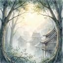 Gentle Celtic-inspired fantasy score for a peaceful rainy day in an elven treetop city; female vocals like soft silver over harp, airy flutes, and warm strings. Raindrop percussion and distant choral pads create a floating canopy atmosphere, verses intimate and close, chorus opening into wider, shimmering harmonies. Subtle low drums bloom under the hook, then fade back into a quiet, breathy outro.