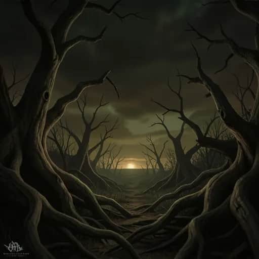 metal, Female melodic death / doom metal; slow, crushing guitars in drop tuning with dissonant harmonies, double-kick flurries that swell into half-time drops. Verses stalk in a mid-tempo stomp with eerie lead lines; chorus widens into soaring, layered clean-and-scream vocals. Tom-heavy fills and chugging low-end create a hypnotic pulse, with brief atmospheric breaks drenched in reverb before slamming back into full weight., beats, doom metal, melodic death metal, rhythmic, hypnotic, death metal