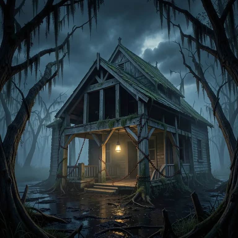 Dark gospel blues, swamp tribal vibe,guitar,stomp clap rhythm, deep bass drone, gritty female vocal, raw,haunting,chains