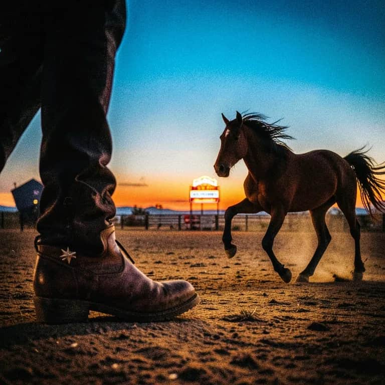 [Intro] Riding through the dust, under endless skies Livin' on the edge, where the wild horses fly A cowboy’s life, rough and free Chasing shadows, just me and the open sea [Verse 1] Saddled up before the dawn, spurs ring on the ground Chasing down that neon dream, in this town of outlaw sounds Boots worn, heart strong, in the saddle till night Faces fade in the smoky haze, under neon lights [Pre-Chorus] But I’m a loner, on this midnight ride With the wind as my only guide Dreams of the rodeo, flames in my soul Living fast, never fold [Chorus] Wanted high or low, wanted dead or alive Riding these endless plains, just to stay alive With a voice in the wind, calling out my name Cowboy’s life, wild and untamed Wanted high or low, wanted dead or alive Riding these rough trails, with the day’s last light Forever chasing that rodeo glow Living free, never saying no [Bridge] Neon signs flicker, as I pass them by Stories told in the glow, of men who’ve died trying Lassoed dreams in the rain, rodeo echoes in my mind Forever chasing that thrill, but leaving no one behind [Outro] So I’ll ride on through the night, with a heart full of fire In this rodeo of life, I’m never gonna tire Wanted high or low, wanted dead or alive This cowboy’s story, forever to survive