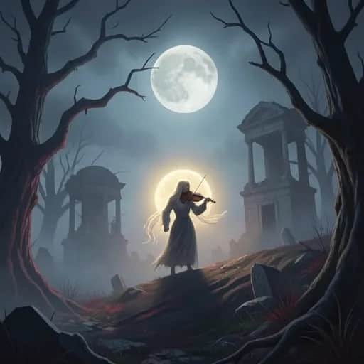 [Intro] Calliope croaks Rust on the notes Paper-thin moon Hangs like a joke [Verse 1] Boots on the gravel Names in the stone You lace your fingers Through every bone Marble-eyed angels Lean in to stare You kiss my knuckles Like you don't care [Pre-Chorus] Grin like a jester Lipstick smeared red Spinning on headstones Dancing with the dead [Chorus] Round and round this graveyard carousel Laughing at the gates of hell You pull me close We ride the edge of fright Waltzing through the tombs at midnight If this is doom Then ring the bell I found my heaven in your hell Hand in hand where all the wild things fell On our graveyard carousel [Verse 2] Your skirt catches cobwebs Tangled in lace You steal a black rose From a cracked vase Violin shivers Thin as a sigh You hum a lullaby Teach it to die [Pre-Chorus] You trace the letters On someone’s cross “Promise you'll dance For me if I’m lost” [Chorus] Round and round this graveyard carousel Laughing at the gates of hell You pull me close We ride the edge of fright Waltzing through the tombs at midnight If this is doom Then ring the bell I found my heaven in your hell Hand in hand where all the wild things fell On our graveyard carousel [Bridge] [Music drops to haunted circus waltz Violin and organ leading] Spin me faster Spin me thin Paint my face Like porcelain If the world ends Let it end here Teeth in your smile Grave dirt in your tears (yeah) [Chorus] Round and round this graveyard carousel Laughing at the gates of hell You pull me close We ride the edge of fright Waltzing through the tombs at midnight If this is doom Then ring the bell I found my heaven in your hell Hand in hand where all the wild things fell On our graveyard carousel